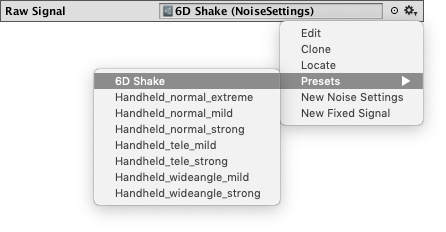 Raw vibration signals are curves that vibrate as a function of time. Cinemachine provides two types of raw signal Asset: